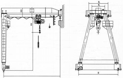 ??MHB型电动葫芦半门式起重机与CD、MD、等型号的电动葫芦配套使用,是一种有轨运行的中小型门式起重机。MHB型含义为单梁半门式起重机,其适用起重量:3T、5T、10T、16t、20T;跨度:7.5m、9M、19M、22.5米;起升高度:
