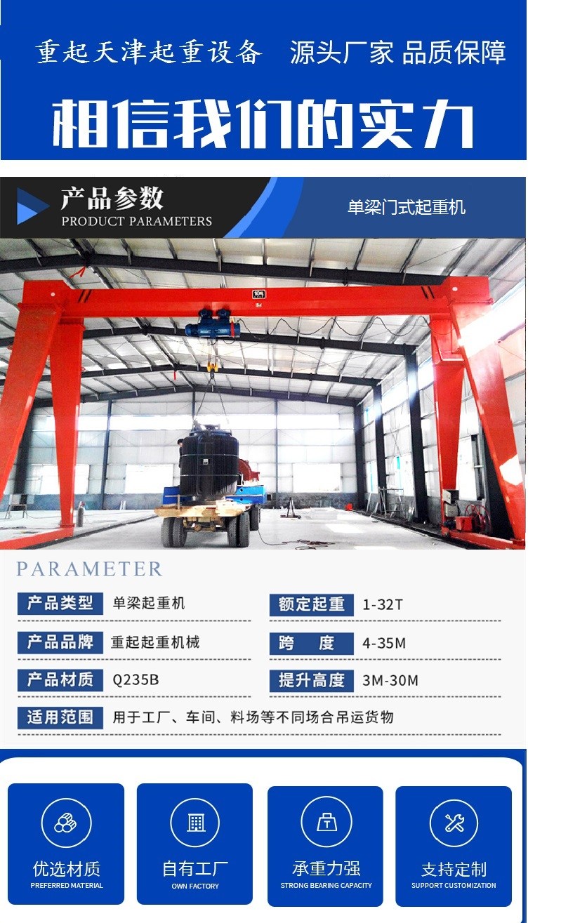 天津北辰区龙门吊拆迁安装 电动葫芦门式起重机 单双梁起重机