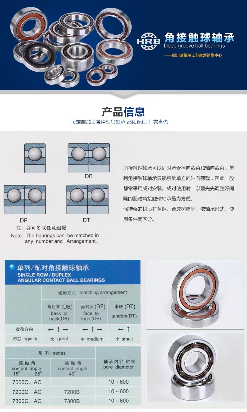 大量供应哈轴HRB角接触球精密轴承7202ACTA/P5DBB可定制加工各种型号轴承