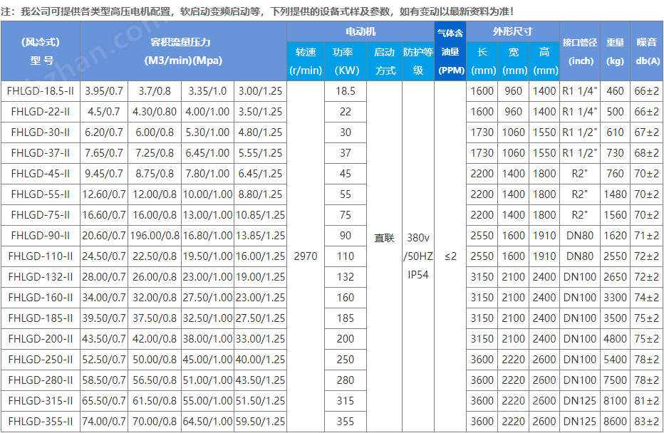 产品描述:双螺杆双级空压机在设计上经过了很大的改造更新,采用新的型线设计,极大地提高了机器的运转可靠性和工作效率,螺杆主机结构简单,几乎没有易损件,提升了运转的可靠性和使用寿命。机身噪音小。主机动力平衡,在高速运转状态下非常平稳。压缩机具有强制输气的特征,容积流量几乎不受排气压力的影响,压缩空气效率高。其操作系统大部分是自动控制,操作人员不必经过长时间的专业培训,可实现无人值守运转。自动控制系统在空压机出现故障时会自动对设备进行保护,减少意外造成的损失,零部件采用长寿命设计节省了不必要的维护费用。