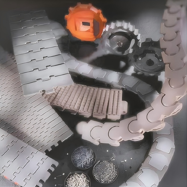 Rexnord 的 TableTop® 链板与 MatTop® 链网是工业输送领域的核心产品,两者在材料设计、应用场景和性能特性上各有侧重。以下是基于技术文档与行业应用的深度解析:一、TableTop® 链板:模块化设计与食品级安全1. 核心技术特性,材料与认证FDA 认证塑料:XLGHS(墨绿色乙缩醛)和 PSHS(免润滑树脂)符合食品接触安全标准,适用于饮料灌装线和烘焙设备不锈钢材质:316L 不锈钢链板通过 500 小时盐雾测试(ASTM B117),用于制药厂洁净室输送结构设计模块化拼接:820 系列链板采用 “咔哒” 式销轴定位,安装时间比传统螺栓连接缩短 60%动态平衡:出厂平衡等级达 ISO G16(1504 RPM),降低振动对轴承的损伤。2. 应用场景与性能食品饮料行业在某啤酒厂瓶装线中,1000-FT 链板(25.4mm 节距)通过平滑表面设计减少 PET 瓶刮擦,破损率从 0.8% 降至 0.1%高温环境下,XPHS 聚丙烯链板(耐 104°C)用于速冻食品隧道,寿命比普通塑料链延长 3 倍制药与电子8500 系列链板(0.75 英寸节距)的迷宫式密封(IP65)防止粉尘侵入,满足 GMP 车间要求3. 选型与维护关键参数负载计算:建议按实际输送重量的 1.5 倍选择,例如输送 50kg/m 的瓶装线,推荐使用 843 系列(承载 75kg/m)轴径匹配:支持 33.3mm 至 279.4mm 轴径,可通过锥形衬套适配非标轴维护要点每季度检查销轴磨损(允许公差 ±0.1mm),XLGHS 材质需特别关注边缘是否出现水解发白采用激光对中仪校准,确保轴偏差在 ±0.5mm 内,避免链板卡滞。二、MatTop® 链网:高温耐受与复杂工况适应1. 核心技术特性,材料创新高温塑料(HT):1505 RT 链网(15mm 节距)耐温 150°C,用于饼干烘烤线,连续运行 1000 小时后硬度变化 < 5%橡胶顶(Rubber Top):Beige 高温款在 - 25°C 至 125°C 范围内保持弹性,适用于速冻食品分拣结构设计编织增强:6990 系列混合链网(结构)采用钢芯增强,在汽车总装线(100m 长输送机)中拉力降低 30%自由流设计:1000 系列 Flush Grid 链网(1 英寸节距)的开孔结构(21% 通风率)提升烘焙均匀性2. 应用场景与性能高温工业在某水泥厂熟料冷却机中,395 系列链网(8mm 节距)通过窄节距设计(转弯半径 6mm)实现密集输送,产能提升 20%9200 系列不锈钢链网(耐 450°C)用于玻璃退火炉,寿命比铸铁链延长 5 倍物流与仓储1200 系列侧弯链网(1 英寸节距)在电商分拣中心实现 90° 无动力转向,分拣效率达 2000 件 / 小时3. 选型与维护关键参数温度匹配:HT 材质在 150°C 下长期使用需降低 20% 负载,例如额定 540lb/ft 的 1505 RT 链网实际承载应≤432lb/ft耐磨设计:HDHS 乙缩醛链板(磨损性能提升 40%)用于面粉厂螺旋输送机,更换周期从 3 个月延长至 1 年维护要点每月清洁链网缝隙中的积料(如面包屑),避免微生物滋生使用扭矩扳手按标准紧固螺栓(如 1040 系列为 250 英尺 - 磅),过紧会导致橡胶顶过早老化。三、供应链与成本对比