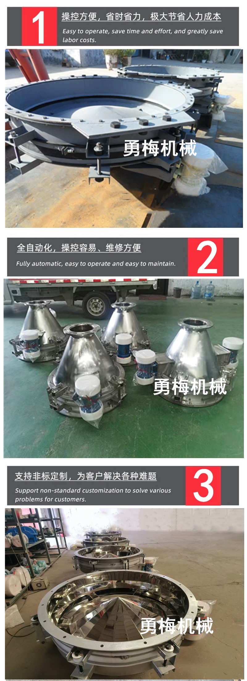 粮食及食品加工行业:面粉、大豆、花生、淀粉、奶粉、食盐、砂糖等原料或成品的存储和输送过程中,能防止物料堵塞,保证生产流程的顺畅。