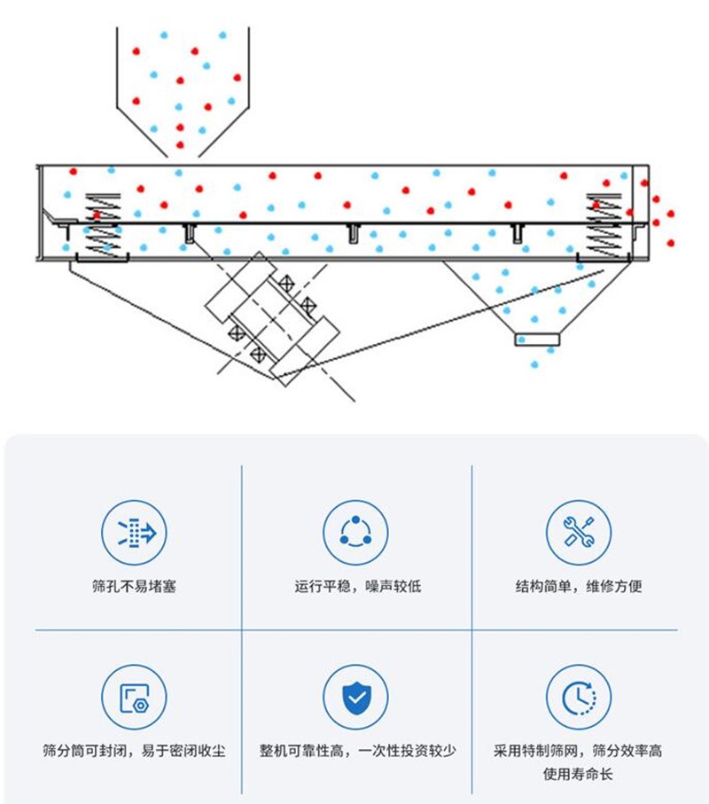 DZSF1530直线振动筛 振动筛粉机采用双电机驱动,17719958219 当两台振动电机做同步、反向旋转时,其偏心块所产生的激振力在平行于电机轴线的方向相互抵消,在垂直于电机轴的方向叠为一合力,因此筛机的运动轨迹为一直线。其两电机轴相对筛面有一倾角,在激振力和物料自重力的合力作用下,物料在筛面上被抛起跳跃式向前作直线运动,从而达到对物料进行筛选和分级的目的。