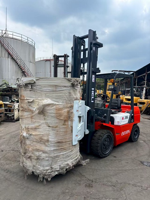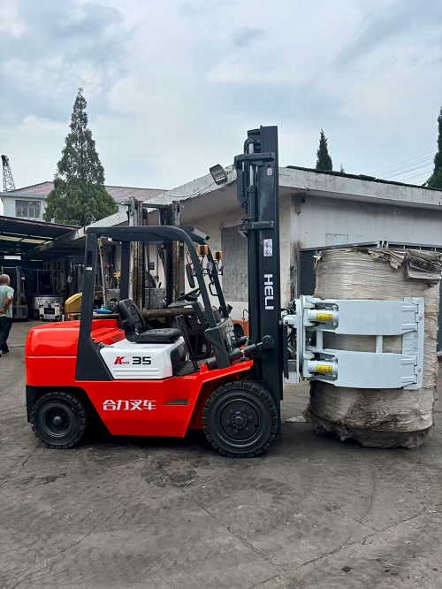 升高4米手动挡合力K35燃油叉车配卡斯卡特开口1.35米圆抱夹