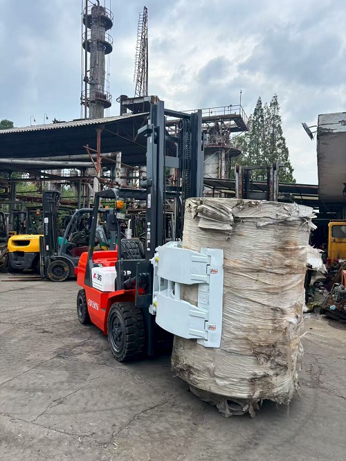 核心特点与工作原理 卡斯卡特圆抱夹的核心特点包括双向360度旋转、弧形夹臂设计以及稳定的液压系统。它通过叉车的液压系统提供动力,操作员控制液压阀,液压油驱动油缸使两个弧形夹臂闭合来夹紧货物。其旋转功能允许夹臂在任意角度进行精准操控,便于堆垛或调整货物姿态。