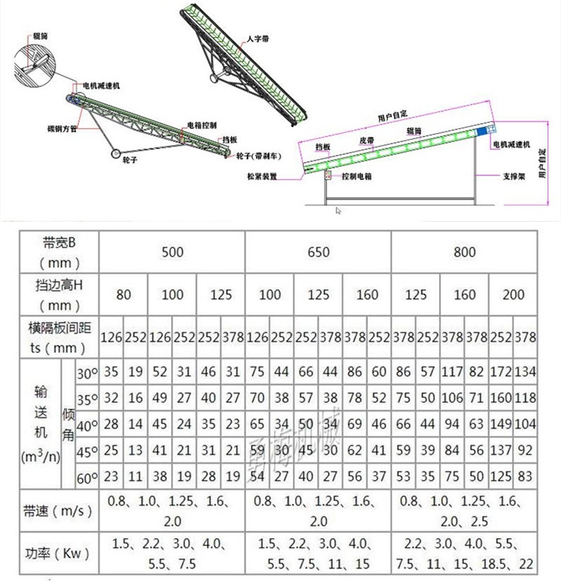 粮食装车带式输送机 格挡皮带机具有结构简单、运行稳定、维护方便、输送量大、效率高、功耗低等特点,可定制性强,能根据不同行业和场合的需求进行个性化设计和改造,适应长距离水平运输和大倾角的连续运输,以及输送机全位置的装卸料。17719958219
