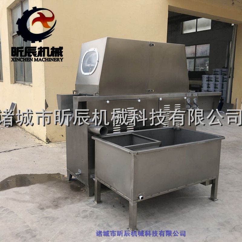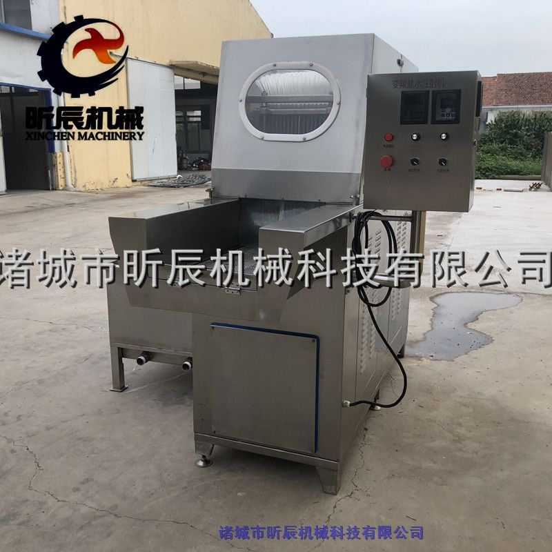盐水注射机可将盐水及辅料配制的腌制液注入肉块中,再通过真空滚揉使料液充分腌渍,渗透,可疏松肌肉组织结构,有利于肌球蛋白溶出,并且由于添加剂对原料肉离子强度的增强作用和蛋白等特点的调整作用,注入配制的水溶液能使肉质嫩化、松软,从而提高了肉制品的出品率和改善肉制品的嫩度和口感。
