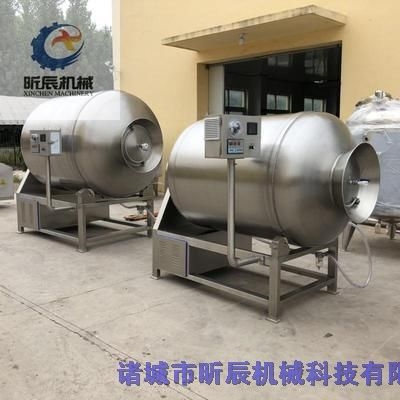 诸城昕辰机械牛肉牛排鸡肉鸡柳鸡排鸭胸真空入味滚揉机腌肉机滚揉缸滚桶 腊肉滚揉机,真空滚揉机是在真空状态下,利用物理冲击的原理,让肉在滚筒内上下翻动,相互撞击、摔打,达到按摩、腌渍作用,使肉均匀的吸收腌渍,提高肉的结着力及产品的弹性,通过滚揉、按摩能使肉体蛋白质分解成水溶性蛋白,易被人体吸收,同时能使添加料(淀粉等)与肉体蛋白质互为融合以达到肉质变嫩,口感好,出口率高。本机具有肺呼吸功能,让产品在滚筒内膨胀、缩小了往复运动,改善了肉组织的结构,提高了切面效果。