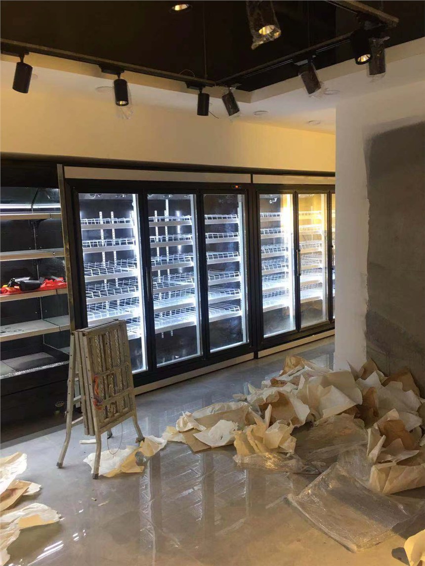? ? ? ? ?郑州商超冷链品牌专业定制玻璃门冷库,品牌展示冷库,郑州仟曦冷链品牌供应后补式展示冷库专为大型超市及便利店所专用,它的设计优点为仓储及展示于一体,侧面有发泡保温门进入库内补货,前面有钢化镀膜中空玻璃门,方便顾客选货,经由前补的方式,库内食品不会出现长时间保存而变质的现象,商品新鲜,顾客满意,商家赢利;采用冷风机吹风制冷,库内温度均匀,降温迅速;调节式货架可根据不同用户需要任意调节高度。设备的关键元器件均采用了国内外知名品牌