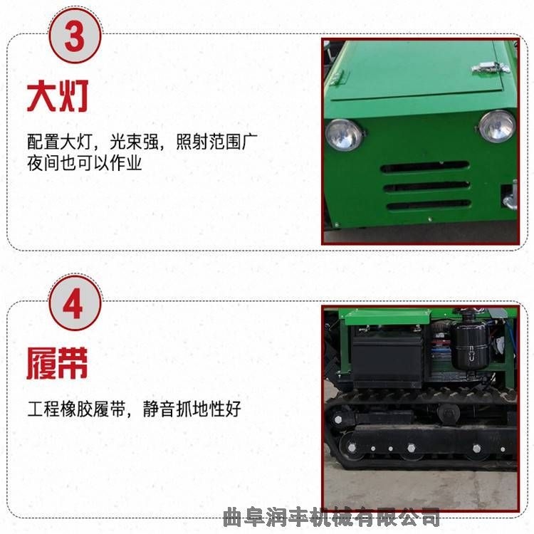 :机身加厚,做工密,履带式行走,可进行原地360度转向。刀具都是加厚75号猛钢锻造,非常耐磨,工作效率高.五大用途型自走式履带式开沟机 润丰 苹果园内用旋耕锄草机