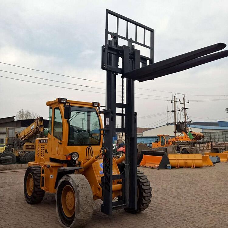 设计的更加紧凑。能够在恶劣的地区如崎岖地形,沙地或泥地上作业。前车架上设有货叉工作装置和驱动前桥,后车架上设有操纵装置和驱动后桥。后车架上还设有分别与驱动前桥和驱动后桥连接的动力装置,前车架与后车架通过铰接装置连接,之间安装有转向油缸。