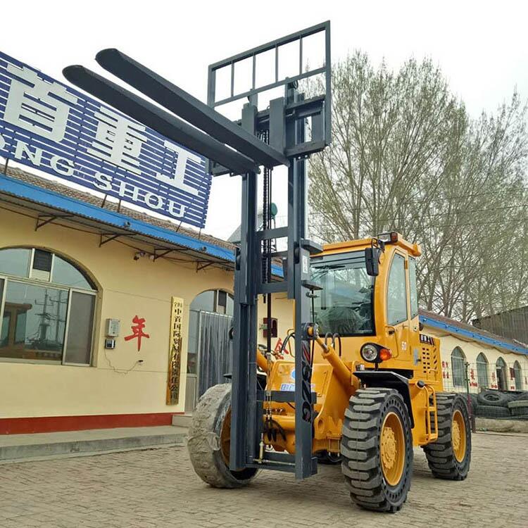 度的越野轮胎,在建筑工地、农场等路面泥泞的工况下能够拥有良好的抓地力、防滑性、稳定性。山东越野叉车,四驱越野叉车,小型越野叉车,