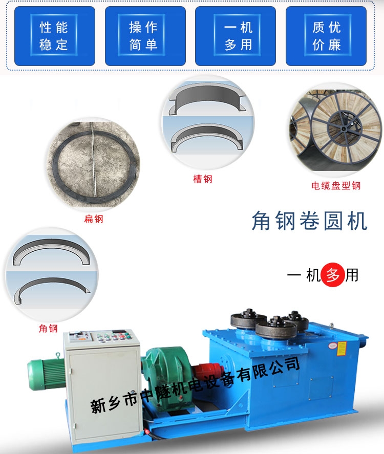 高铁吊篮角钢弯弧机 设备类型介绍 本发明的优点是:角钢卷圆机由原三辊卷板机进行改制而成,利用其延伸功能,将卷板机改制成角钢弯曲专机,具有投资小,快,不占用生产场地,性价比高的特点;其运行及操作与卷板机的操作是一样的,操作简单,无需再配置专机操作工,节约人力资源。同时随着生产效率的,生产成本大幅下降。