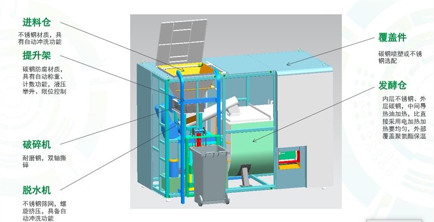 ?这种设备集成度高、占地面积小、操作简便,一般用于机关、学校食堂、宾馆、酒店、工厂等日产量在300-5000kg具备安装场地的餐饮单位,可实现现场直接处理,无需外运,造成二次污染。