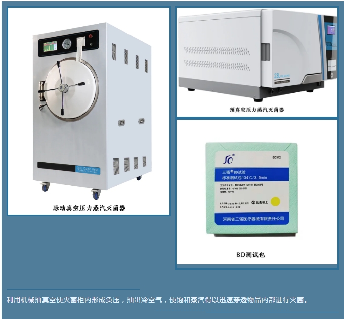 在医院应用中,压力蒸汽灭菌器达到灭菌目的主要是通过饱和蒸汽冷凝时将大量潜热释放的物理特征,从而保持待灭菌物品一直处在潮湿与高温状态中。脉动真空灭菌器适用玻璃器皿、金属器械、敷料、衣物等的灭菌处理。