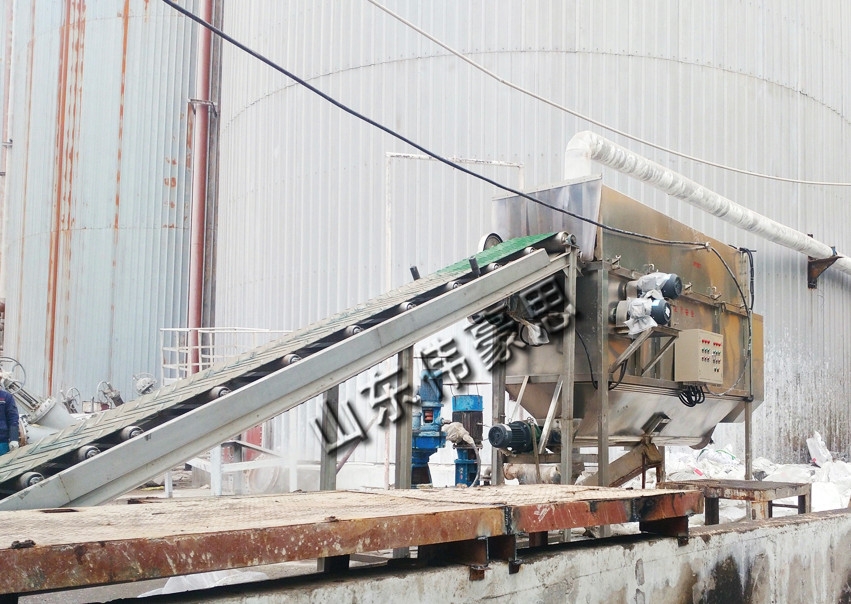 自动拆包机是由自动拆包机和输送设备组成的,可以的完成拆吧卸料输送作业。自动拆包机由上料皮带机和拆包机主机两大部分构成。拆包的过程仅需一人将料袋放置在皮带机上即可,然后料袋自动进入拆包机箱,在拆包机箱内完成割刀破袋,袋料分离作业,纯净物料输出机体,残袋进入废袋收集装置。密闭的箱体和内置的除尘系统,解决了拆包的过程中粉体污染问题,并且回收的粉尘会一起落入储料斗中,避免了物料的浪费现象
