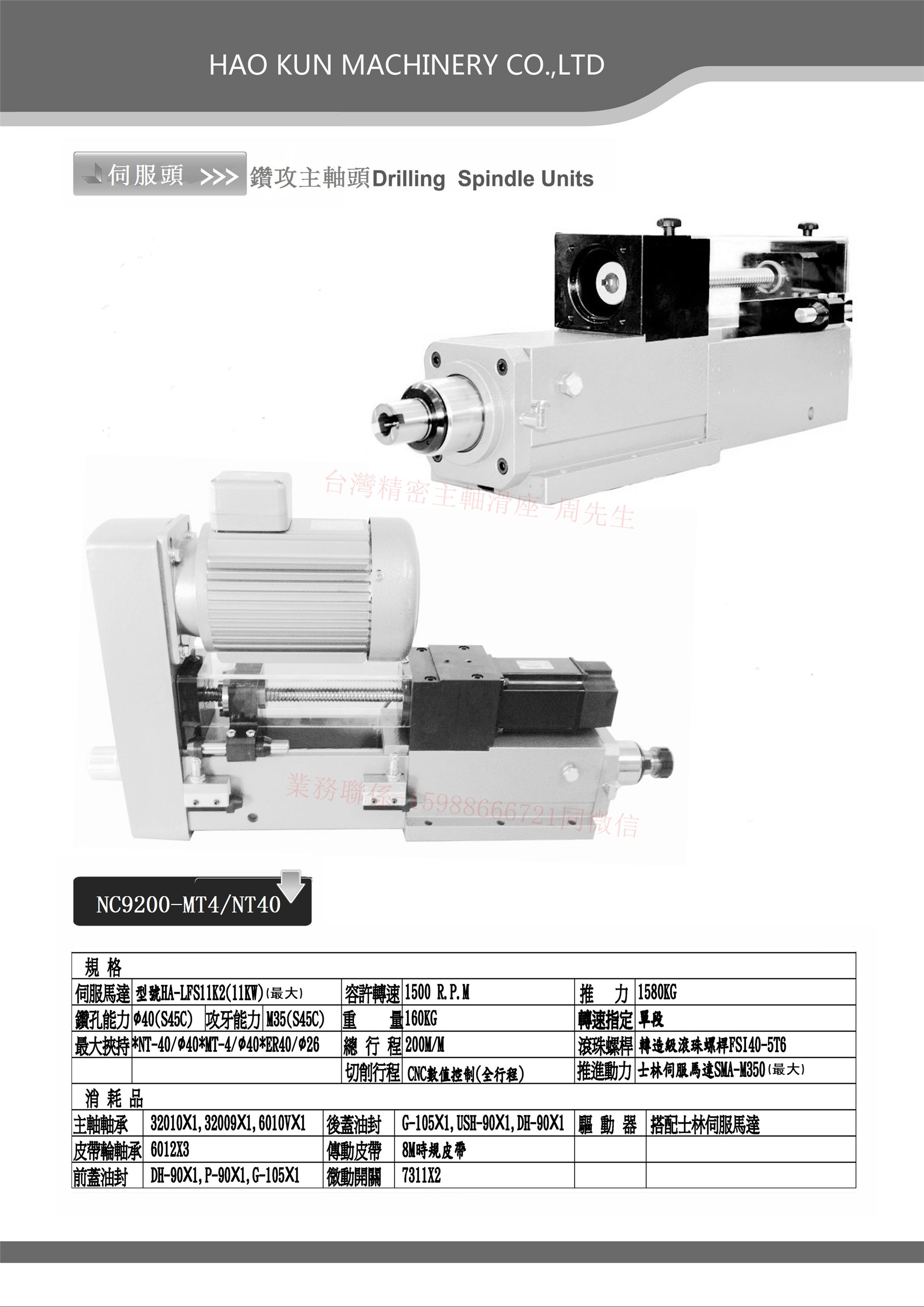 NC9200伺服钻孔动力头/CNC9200-NT40台湾原装伺服动力头