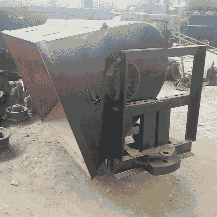翻斗式矿车车箱断面为V形或U形,支承在车架的翻转轨上,车箱在翻转轨上翻转卸载。翻斗式矿车用在矿山或建筑工地上,用来运输碎的块状物料。如:矿石、煤炭、石头等。由车箱、车架、缓冲碰头、轮轴等组成。结构简单,坚固耐用、使用方便、只需人力打开止动板就能很容易地卸下物料。轮轴采用了滚柱轴承,有效地减少了运行阻力,用人力即可推动。