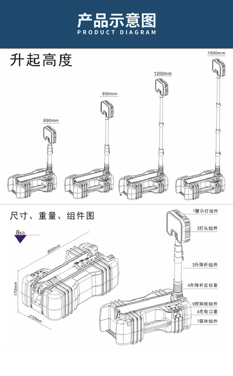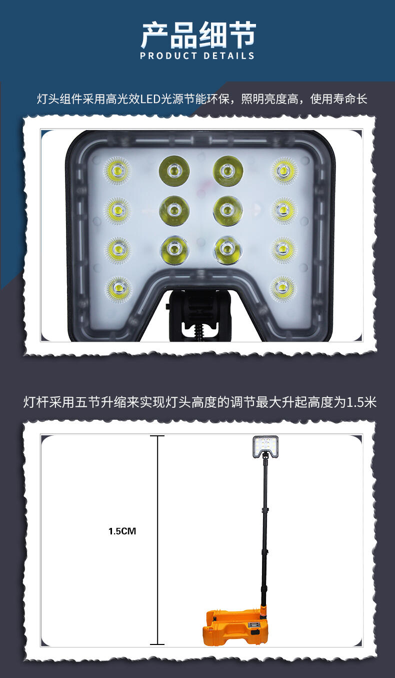 ◆轻便耐用:灯具体积小、重量轻,可以实现手提、背行两种携带方式。灯具也可以安装铁轨轮,方便用户在铁路单轨上移动;
