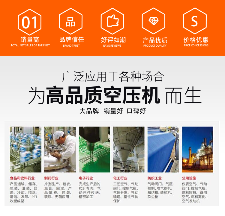 性能 | 低噪音、可变频、防爆等空压机 | ||