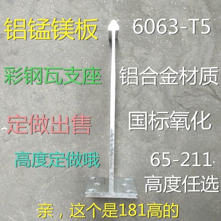 铝镁锰金属屋面直立锁边系统支架(支座)系列:300 400 420 430 500系列。铝合金支座型号: H65mmH75mm H85mm H100mm H115mm H125 H135mm H155mm H165mm H169mm H180mm 铝合金材质(6063 T5)? ?