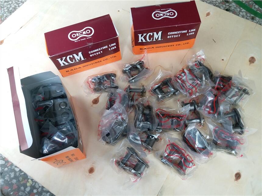 KCM链条主要特点有: 1、標準传动用滚子链是以JIS和ANSI規格为基准的通用传动滚子链。规格有KCM25-KCM200 。 2、板式链(AL型、BL型)是由链板和销轴组成的垂吊用链条。 3、不锈钢链是可以在药品、水中和高温等特殊环境使用的不锈钢链条。 4、防锈链是表面镀镍的链条。 5、标准附件链是在传动用标准滚子链上附加附件的链条。 6、空心销轴链是用空心销轴连接的链条,根据客户的要求可以自由附加或取下销轴、横杆等附件。 7、双节距滚子链(A型)是以JIS和ANSI规格为基准的标准滚子链的2倍节距的链条。是平均长度的重量比较轻的低速传动链条,适用于轴间距离长的装置设备 8、双节距滚子链(C型)是以JIS和ANSI规格为基准的标准滚子链的2倍节距的链条。主要用于低速传动和搬运,有标准直径S型滚子和、大径R型滚子 9、双节距附件滚子链是在双节距滚子链上附加附件的链条,主要用于搬送。 10、SL型滚子链是利用含油套筒,无须补充润滑油可以使用的链条。也有标准滚子链型的。 11、ISO-B型滚子链是以ISO606-B为基准的滚子链 英国,法国,德国等地进口的产品用这样型号的比较多。 规格有KCM-04B到KCM-24B 12、H型滚子链加厚了标准滚子链的链板,采用强韧钢销子,提高了强度。