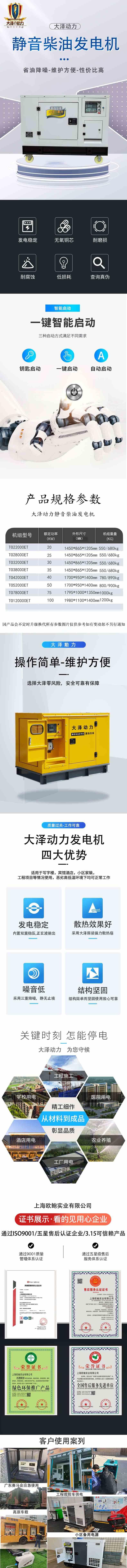 大泽发电机组厂家设计、销售和测试等一整套工艺流程符合GB/T2820-97的标准,其电力可靠、性能稳定,在极其恶劣的环境下也能提供正稳定可靠的电力。新型电压自动调节器,保证了电压平稳输出;静音发电机组采用功率强劲的多缸柴油机作为配套动力。直喷式燃烧室燃烧效率高,发动机的运行噪声特别低;低油压报警系统可自动关闭发动机;电启动保证了机组可快速启动。