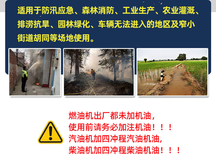 翰丝汽油机水泵抽水机应急防汛高扬程森林消 防手抬自吸泵23468寸