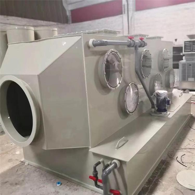 循环水槽循环水槽与洗涤塔本体相连接的,水槽容量为2-3分钟循环水量,水槽内部设有浮球式液位控制器,并预留有洗涤水入口溢流口及排放水口。适用对象:电子工业、半导体制造业、PCB制造业、LCD制造业、钢铁金属工业、电镀及金属表面处理工业、酸洗制程、染料/制药/化学工业、除臭/中和、燃烧废气SOx/NOx之去掉、其它水溶性空气污染。PP洗涤塔性能特点:(1)物理性能:PP洗涤塔对水特别稳定,在水中14h的吸水率仅为0.01 分子量约8~15万之间,成型性好。(2)力学性能:PP洗涤塔的结晶度高,结构规整,因而具有优良的力学性能,其强度和硬度、弹性都比高密度PE(HDPE)高。