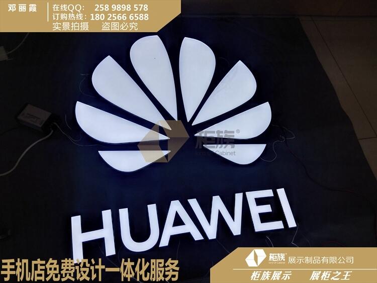 华为3.5版体验店展台有收银服务台,手机体验台,PC平板靠墙边柜,中岛层板矮柜,智能中岛展台,背景灯箱,智能家居配件柜,靠墙层板背柜,背景墙发光字,门头招牌字,实木凳子,亚克力件等,均可定做及批发!