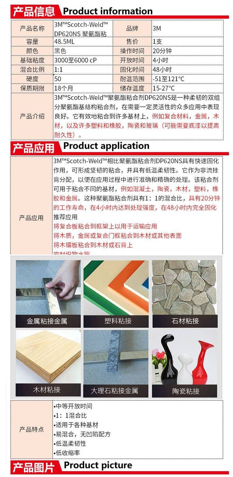 3MDP620NS。可用于众多金属,橡胶,多种塑料,玻纤、玻璃,陶瓷,碳纤维、等复合材料粘接。