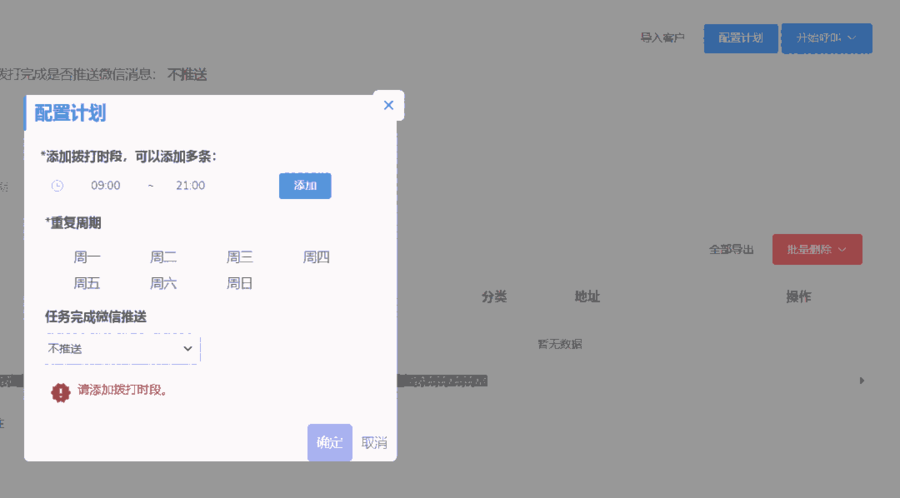 智能外呼机器人的操作非常简单:只需设置拨打时间,导入数据,即可自动工作,拨打出来的意向客户也可实时推送到微信,无须全天盯着,非常方便。且每天至少可拨打3000通电话以上,适合个人也适合团队使用。