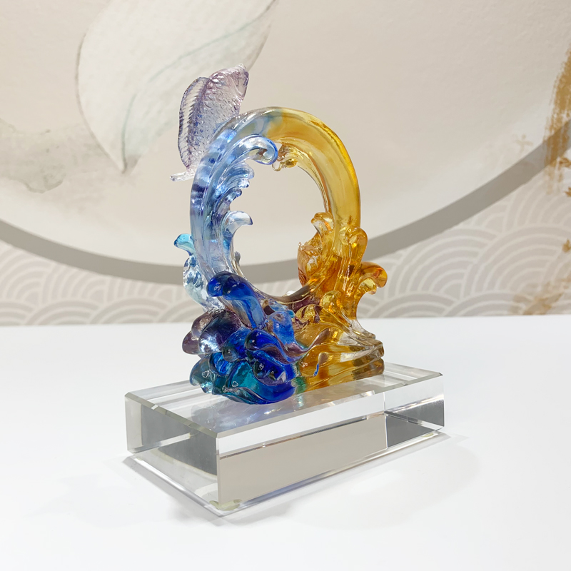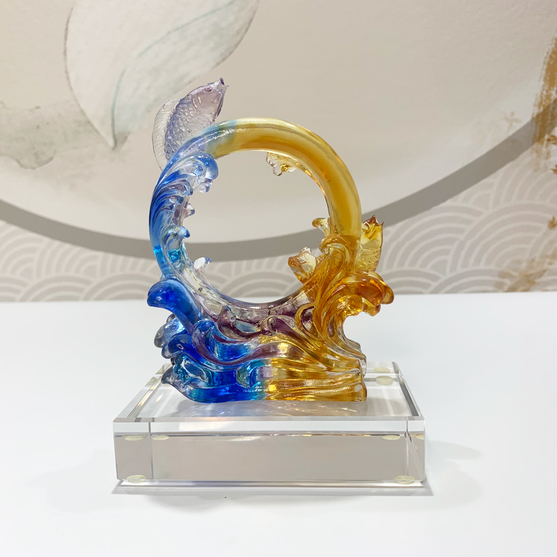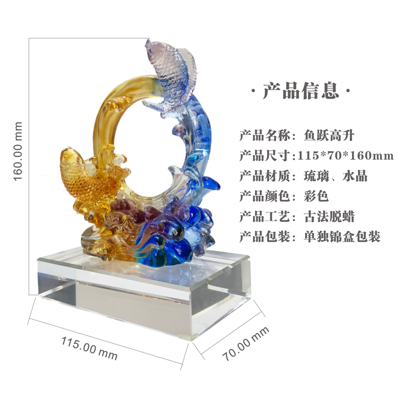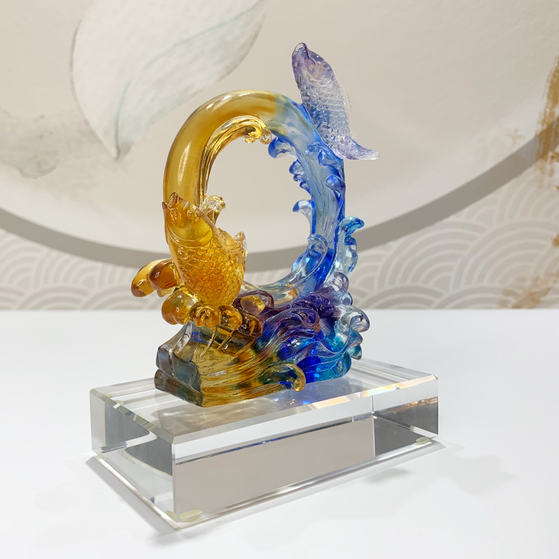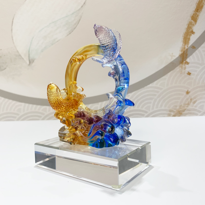 鱼跃高升琉璃工艺品摆件家居装饰礼品广州深圳琉璃纪念品定制