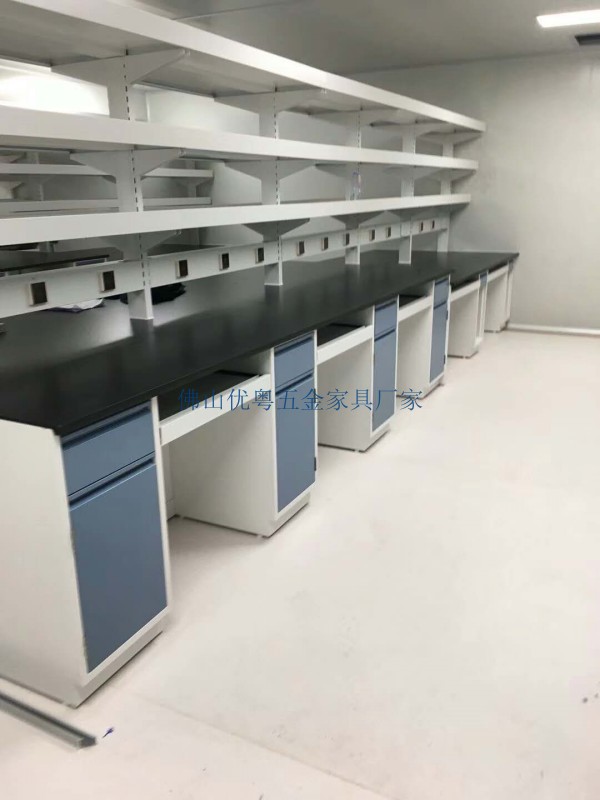3. 实芯理化板:实芯理化板是由牛皮纸与装饰色纸经高温高压压制成的板材,表面经特殊的理化处理,造价较低,并且具有耐酸碱腐蚀,耐热,耐磨,抗冲击的优点,大部分普通化学实验室的实验台选择实芯理化板作为实验室台面。