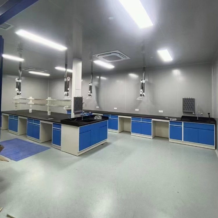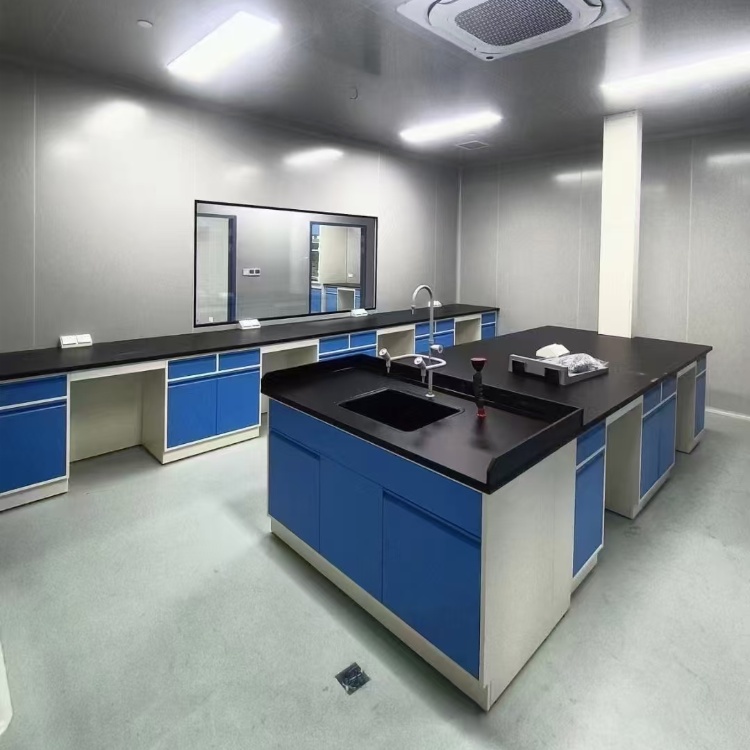 结构:一般由台面、柜体、柜门、抽屉、支撑脚等部分组成。台面需具备平整、光滑、耐磨损、耐腐蚀等特性,以防止仪器设备在使用过程中发生晃动或损坏;柜体用于存放实验用品和工具,可根据需要设计不同的尺寸和分隔方式;柜门和抽屉则方便取用物品,通常配备优质的五金配件,确保开关顺畅、耐用。