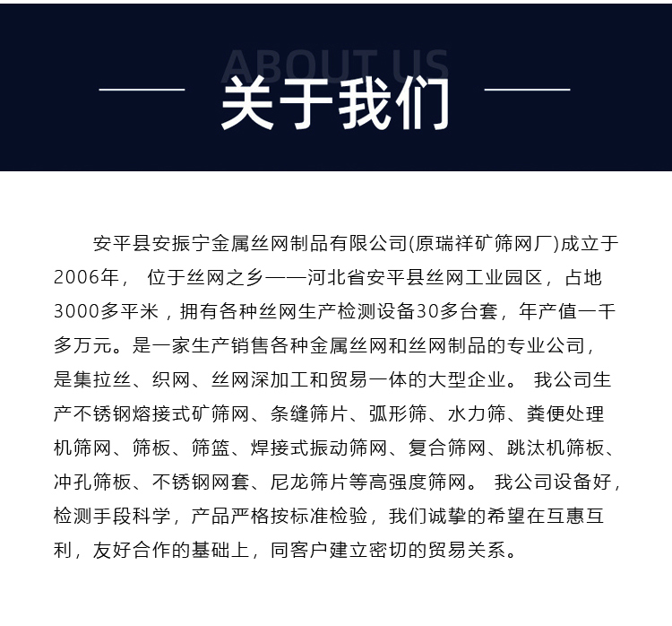 安振宁金属丝网制品有限公司 智能客服智能客服在线解答,若涉及资金打款事宜,务必与厂家进行电话确认。