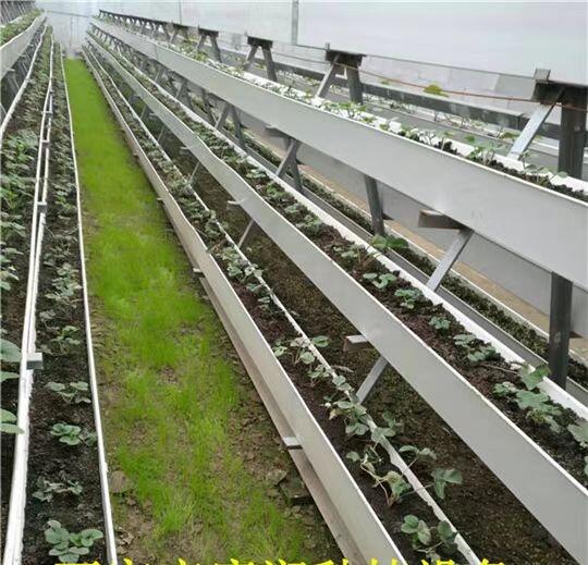 种值槽立体栽培采用的基质是红土、泥炭土、谷壳等混合而成,基质使用成本低,生产管理中省肥省水。基质消毒杀菌容易,能有效地解决草莓栽培中的重茬难题。