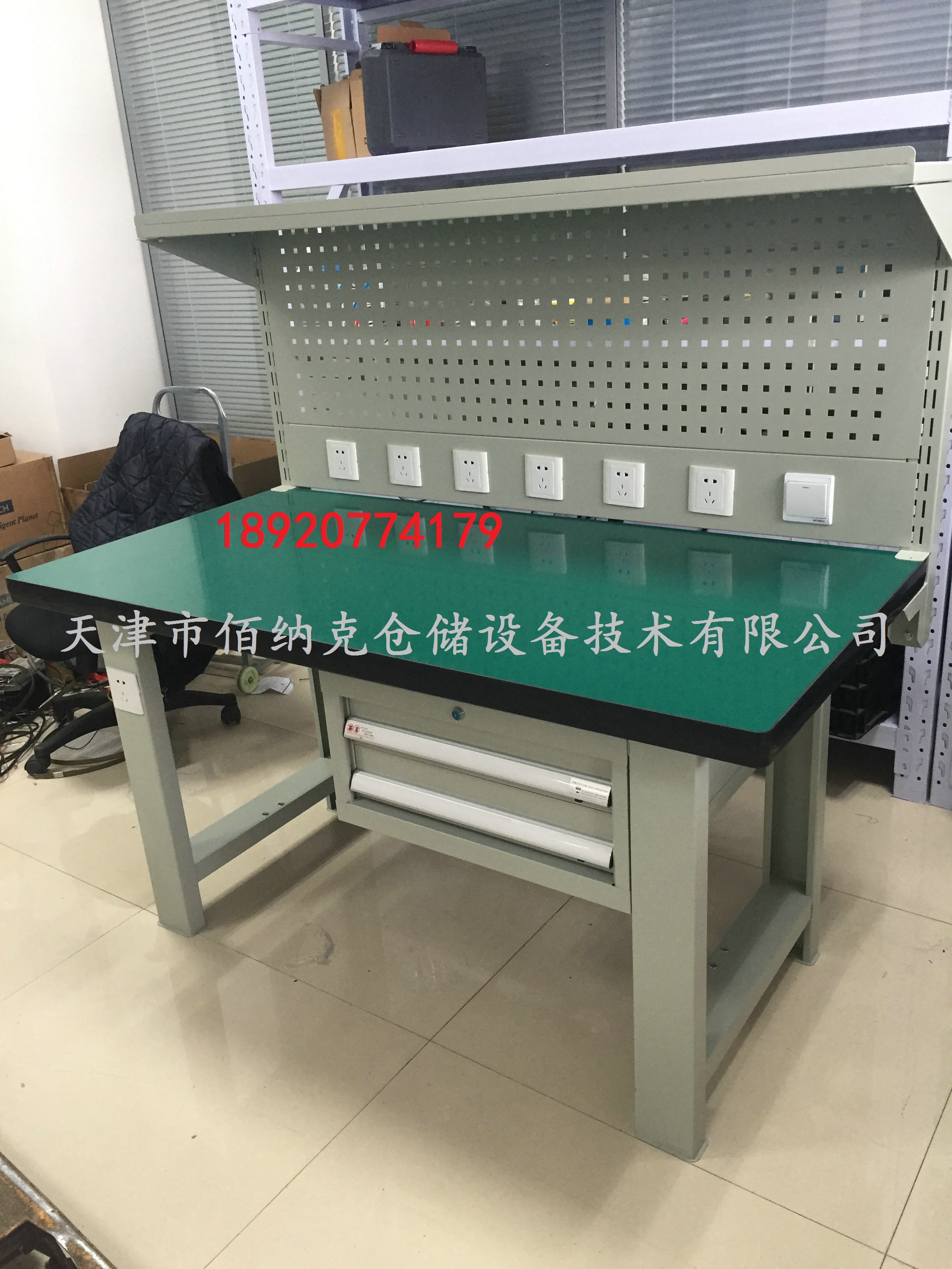 2、天津工作台可加装挂板,挂板分为百叶挂板、方孔挂板,加装挂板的工作台可配合零件盒和挂钩的使用,用于管理五金工具及零部件;