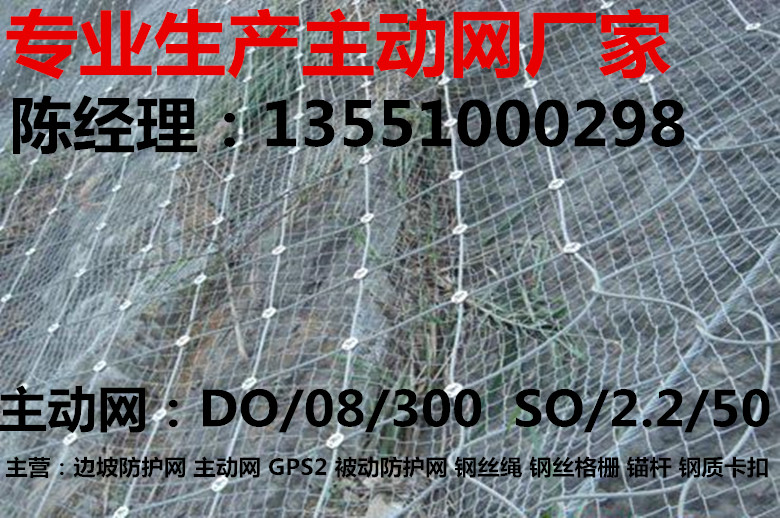 主动网GPS2钢丝绳锚杆长度一般2m-3m、抗拔力不小于50KN、能有效的拦截岩崩、飞石、雪崩、泥石流等,保护目标建筑设施。