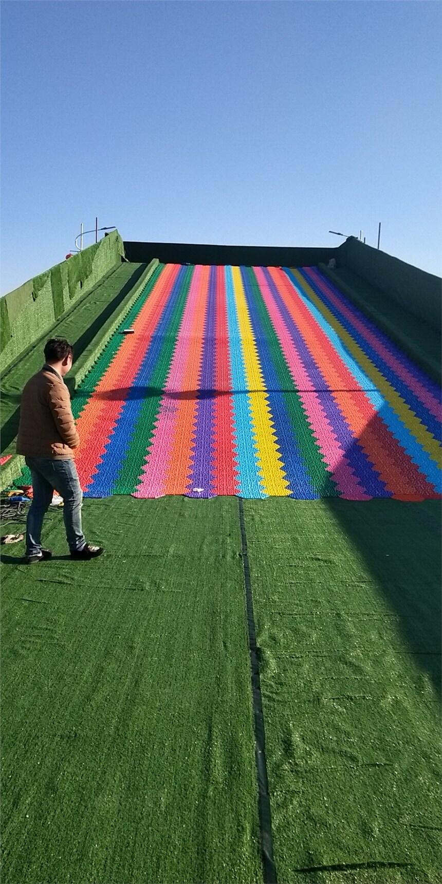 七彩滑道色彩的美感,视觉冲击 所谓爱美之心人皆有之,美好的东西总是能带动人的情趣;缓解视觉及心理疲劳。好看的景、色彩都会给人身心舒畅的感觉 动感和刺激,调动身体每个细胞 七彩滑道需要的场地不受限制,有时候可以占据整个山坡,当人们从上往下滑坡的时候,会让人感受风一般速度的同时又能领略到大自然的美好 场地多样可控 七彩滑道可以在不同的地方设置;景区、度假村、公园、度假山庄、生态园区等。可以根据季节特点,建造自然七彩滑道和人工七彩滑道; 弹性项目,可灵活建造