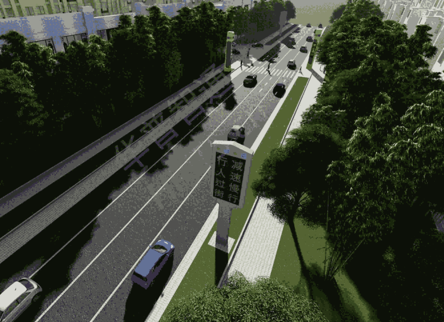 一种一体式行人过街安全预警屏,路口来车预警,行人过街预警,自带雷达监测功能。可增设人机非识别相机,后台监控路口实时情况和流量统计。