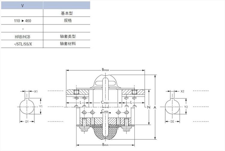 ? ?轴套材料为标准钢,也可选用不锈钢或表面经过特别防腐处理的轴套。对于任一规格的联轴器V,VS和VSX型轴套是可以互换的。