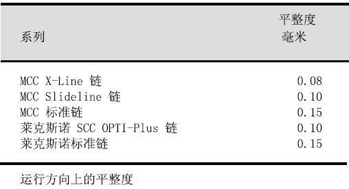 在整个生产过程中,分别在运行方向(R)和链宽方向(W)测定平整度。当产品从一个链条向另一个链条侧向滑动式,链宽方向上的平整度显得非常重要。因此,所有莱克斯诺和MCC链条的横截面是凸形的,而非凹形的,起目的在于防止产品倒瓶。由于生产过程中的精心控制,这些链条具有出色的横向平整度值,该数值可以在每个链条对应页码中的表格上找到。