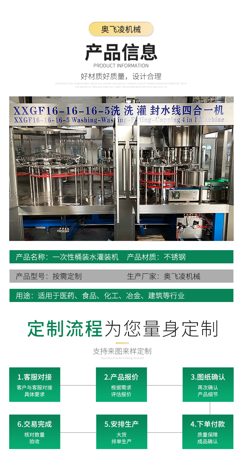 奥飞凌灌装机一次性桶装水灌装设备全自动大桶水液体灌装生产线