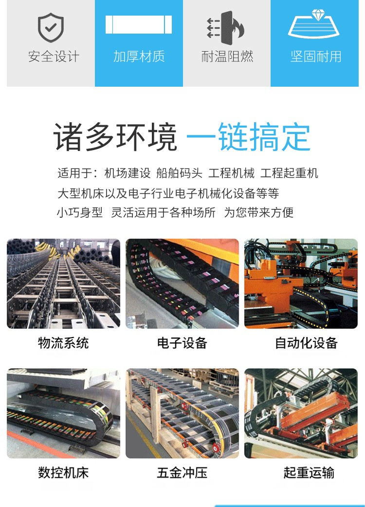 耐高温耐磨阻燃隔热拖链耐腐蚀防酸碱坦克链