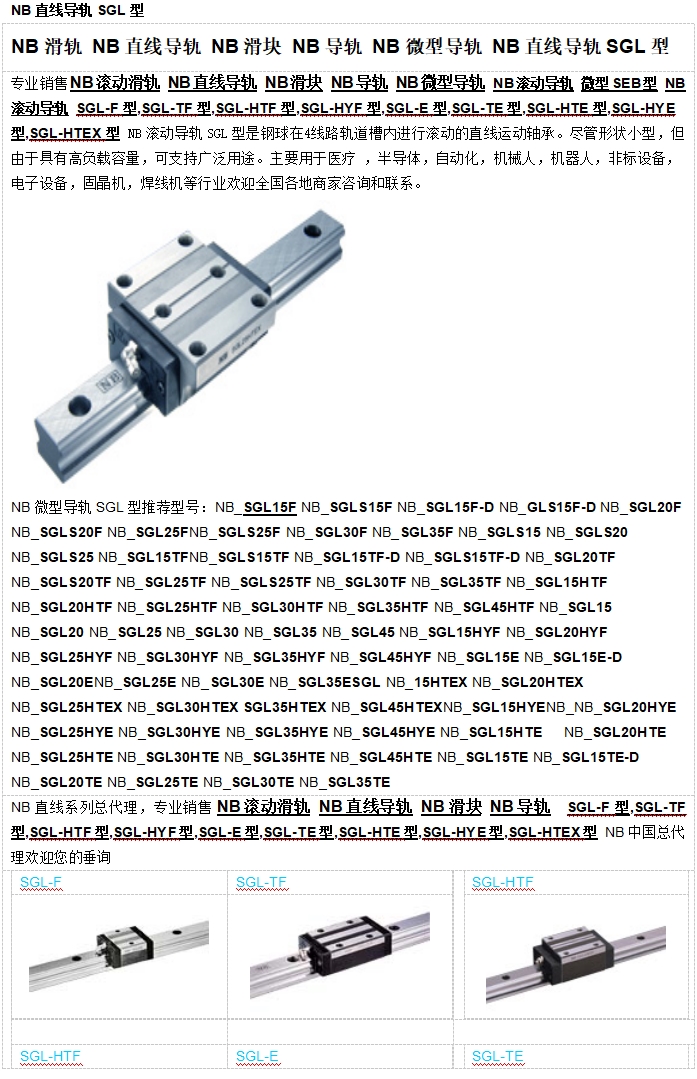 NB直线导轨SGL型半导体电子设备动力传动机床加工中心