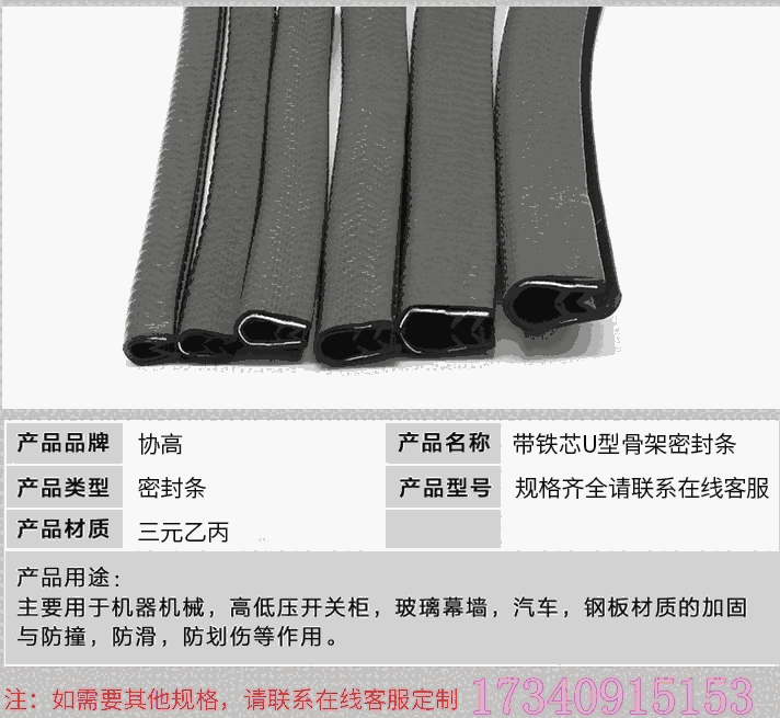 2.三元乙丙密封胶条有优异的耐天候、耐臭氧、耐热、耐酸碱、耐水蒸汽、颜色稳定性、电性能、充油性及常温流动性。三元乙丙胶条在120℃下可长期使用,在150-200℃下可短暂或间歇使用。加入适宜防老剂可提高其使用温度。以过氧化物交联的三元乙丙橡胶可在苛刻的条件下使用。三元乙丙橡胶在臭氧浓度50pphm、拉伸30%的条件下,可达150h以上不龟裂。
