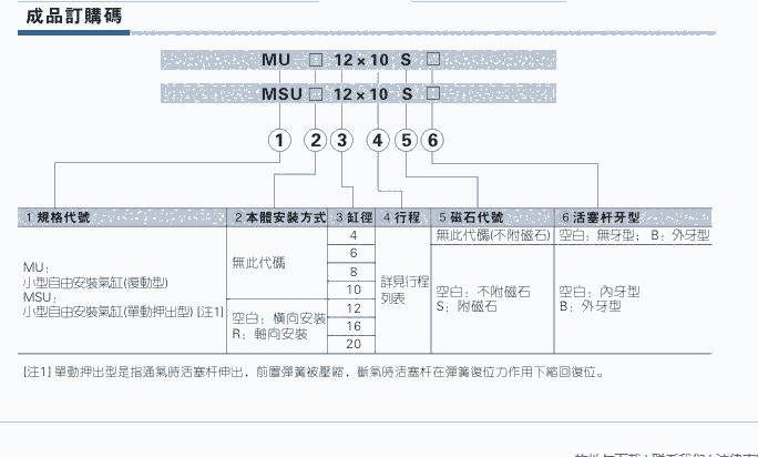 1.缸径:4、6、8、10、12、16、20等可选。每种缸径分别对应多种规格行程,方便选用。 |