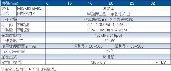 1.缸径:6、16、20、25、32等可选。每种缸径分别对应多种规格行程,方便选用。 |