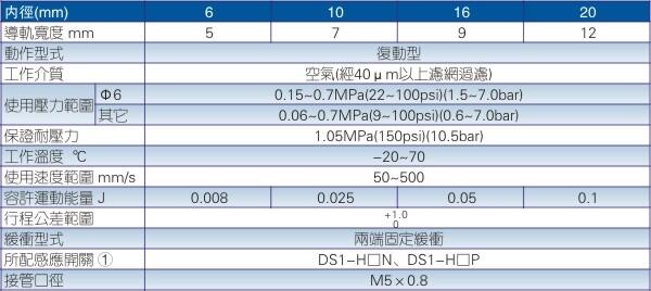 1.缸径:6、10、16、20等可选。每种缸径分别对应多种规格行程,方便选用。 | |||||||